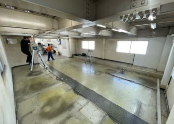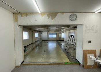 1期工事では広々とした事務所スペースの改修工事をお盆休み中に行い