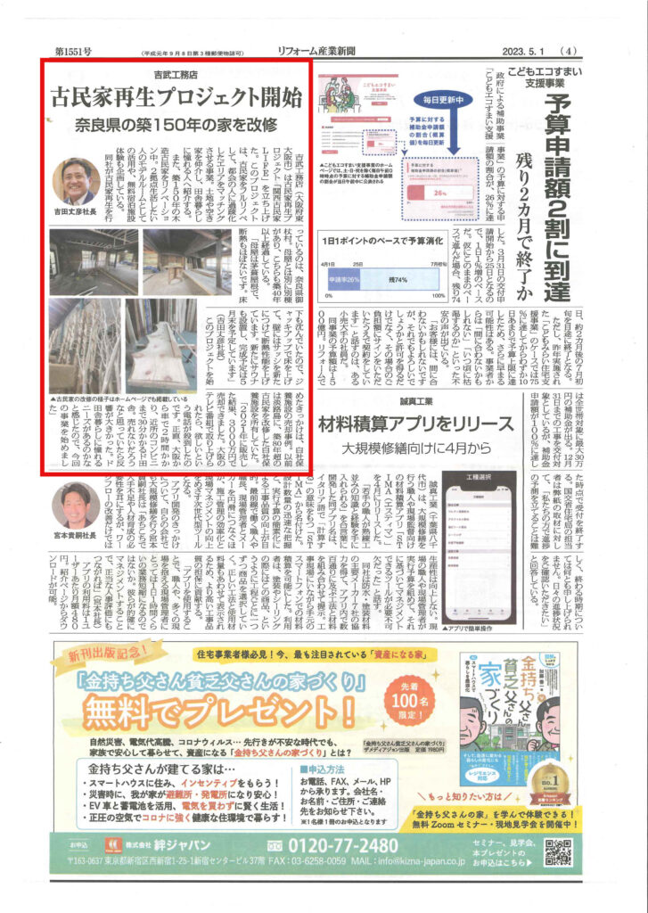 記事PDFはこちら➡ 230501_リフォーム産業新聞
